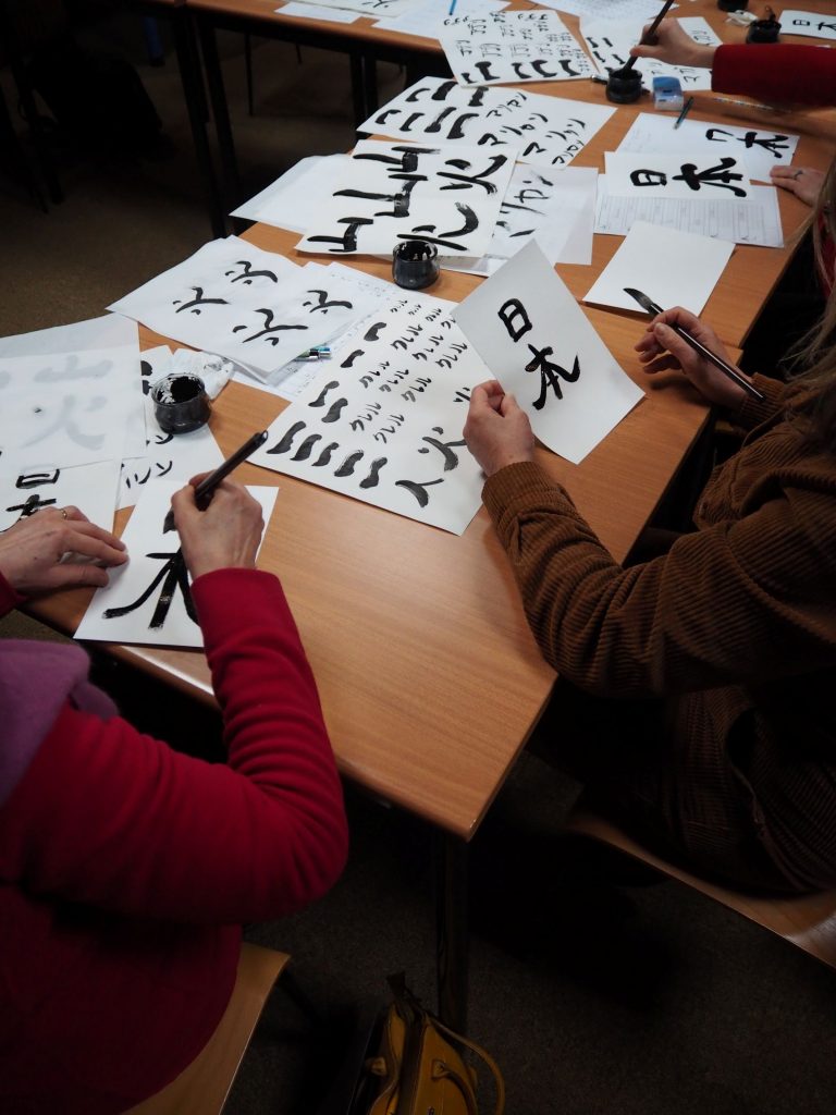 Cet atelier s’adresse aux débutants et ne nécessite aucun prérequis. Le matériel est entièrement fourni. Après une première partie de présentation du Japonais et de ses spécificités, chacun pourra écrire son prénom en katakana, se familiariser avec le médium pinceau-encre-papier, pratiquer l’écriture de quelques caractères sur papier simple, puis de choisir son caractère kanji préféré à tracer sur une feuille de papier d’art.